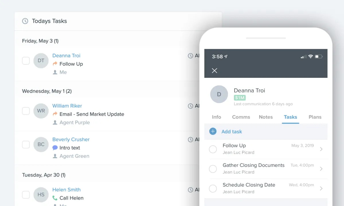 Review client and lead lists in Smart Lists and call or text them. Go home confident that follow up is 100% under control.
